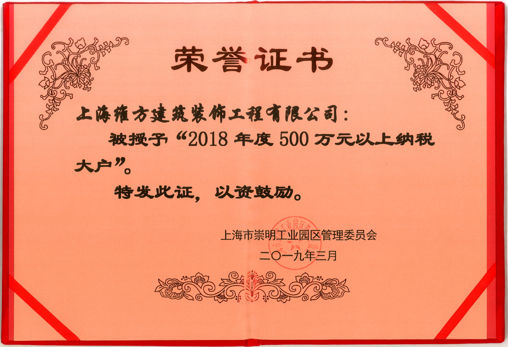 公司獲2018年度崇明工業(yè)園區(qū)納稅大戶榮譽稱號