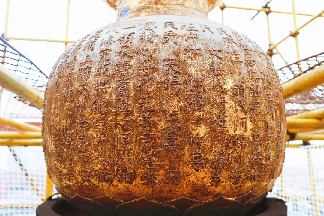 保養維護過程中發現的刻有1976、1954年份字樣的塔磚