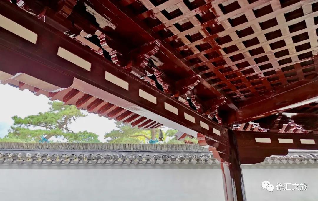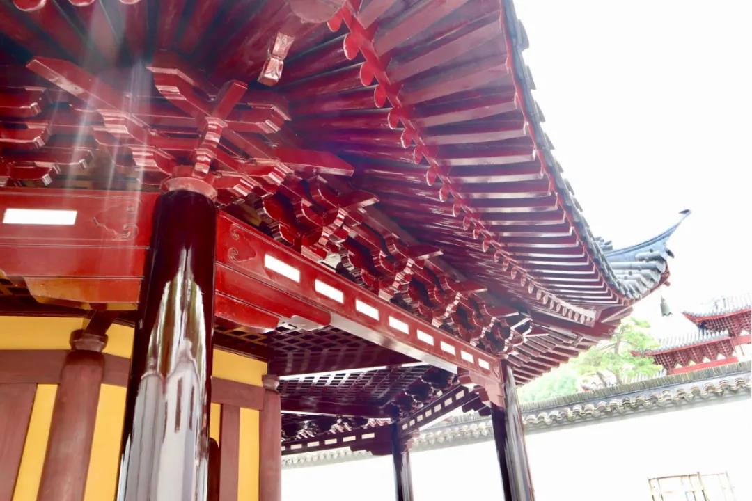 ? ? ? ??闌額,是中國古代建筑中柱子上端聯絡與承重的水平構件。繼1954年修繕后,本次龍華塔保養維護,參照《營造法式》上的油漆方法,恢復宋制“七朱八白”粉飾方式,使千年古塔重現古樸原貌。