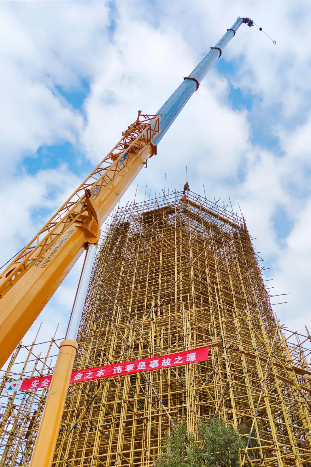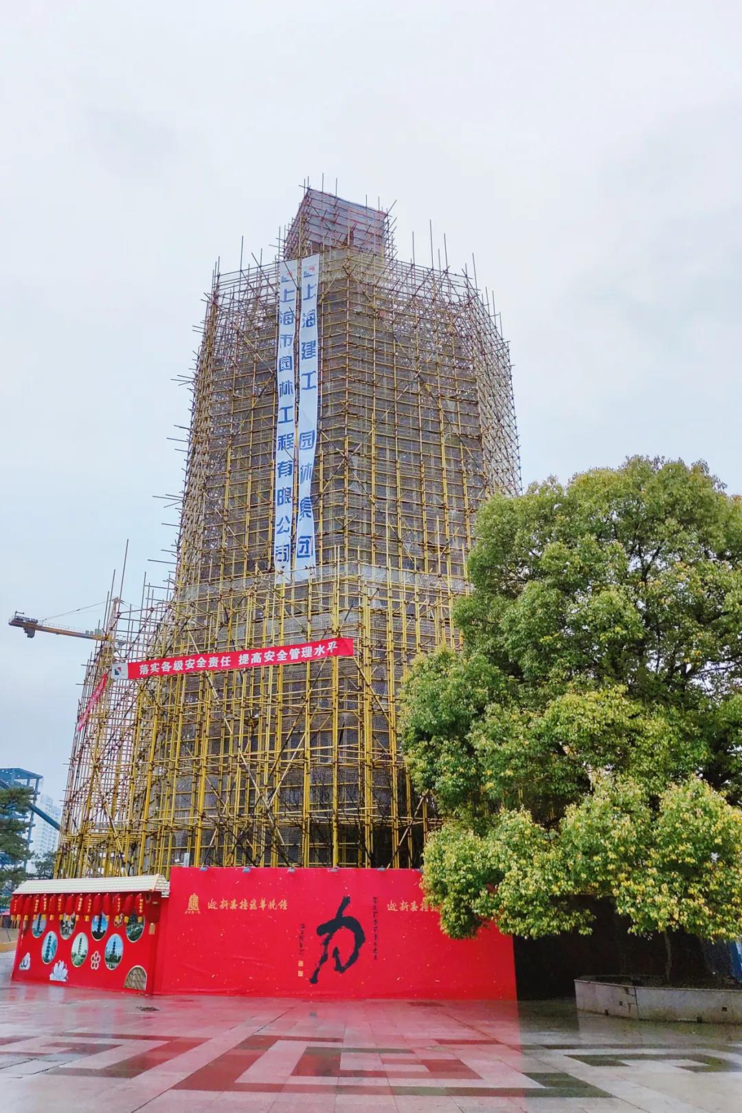 ? ? ? ??為了在龍華塔保養維護過程中,腳手架不與龍華塔有任何部位接觸,腳手架搭建方案經過縝密設計與嚴格審查后,才得以實施。腳手架總重量達100多噸,從搭建方案設計到搭建完成,共耗時近4個月,占據了本次龍華塔保養維護項目總工期的近一半。